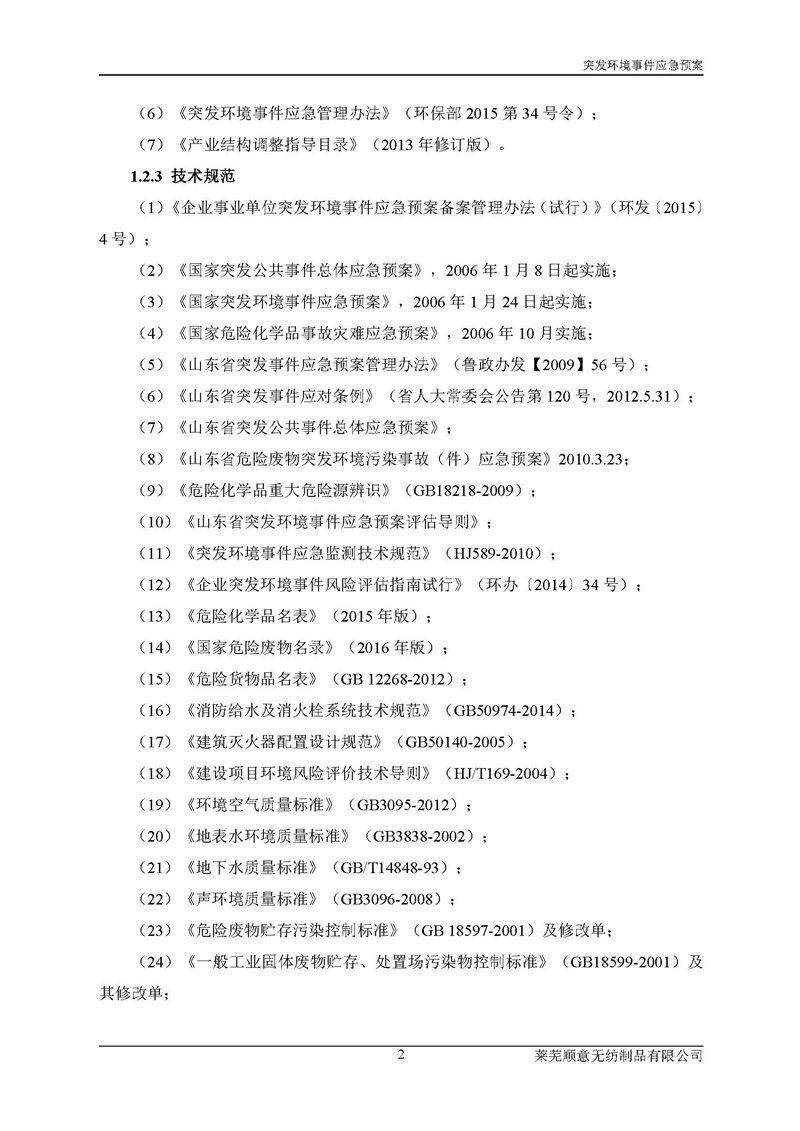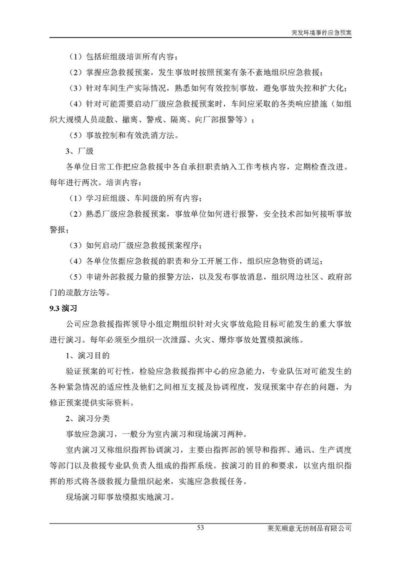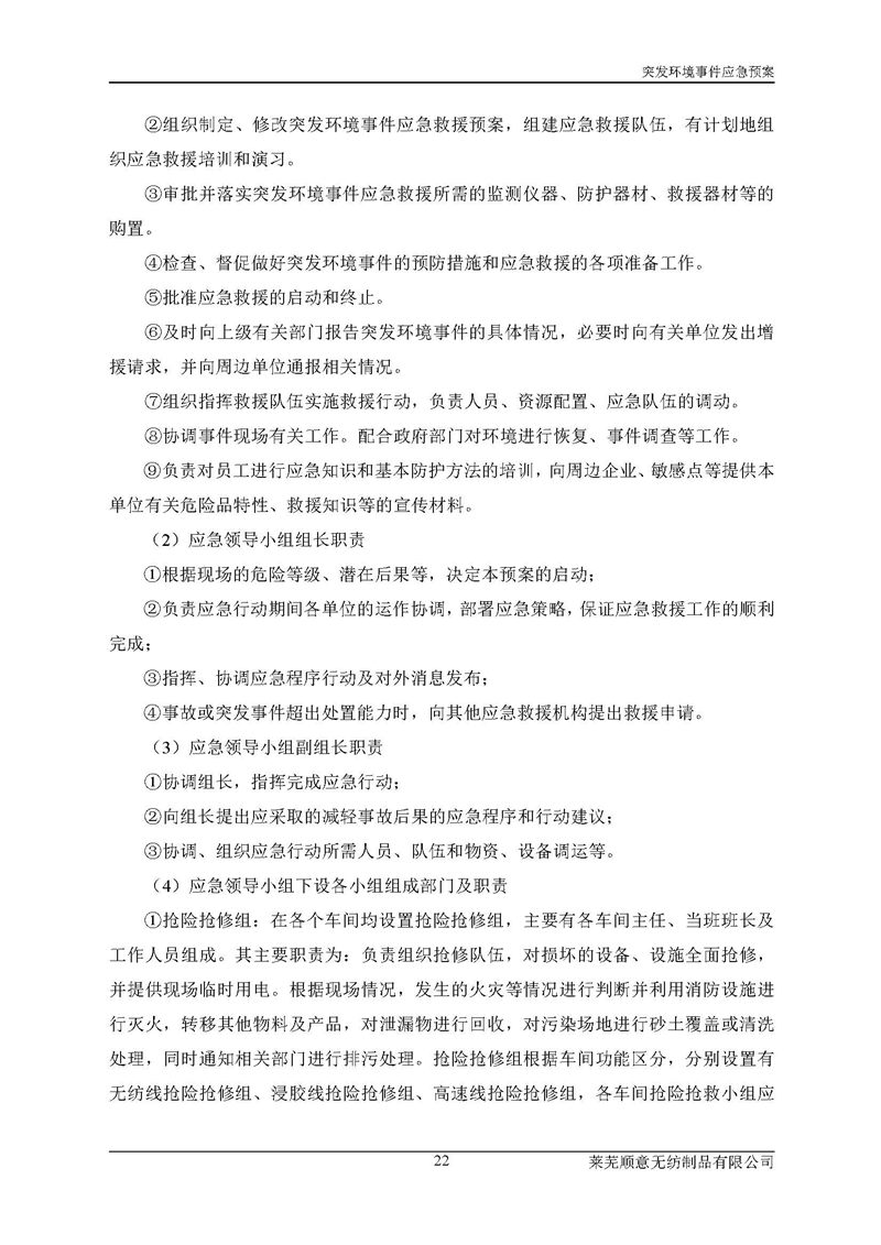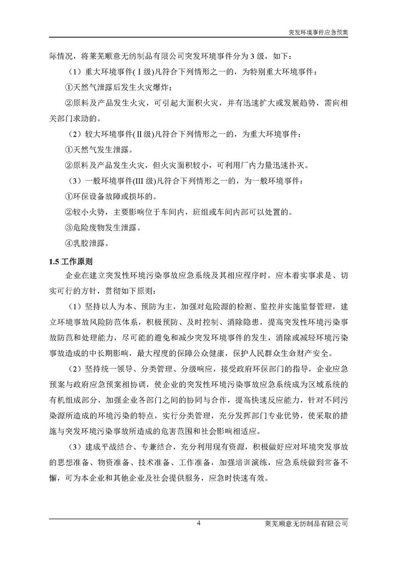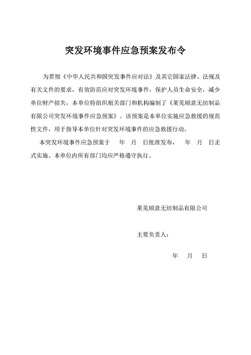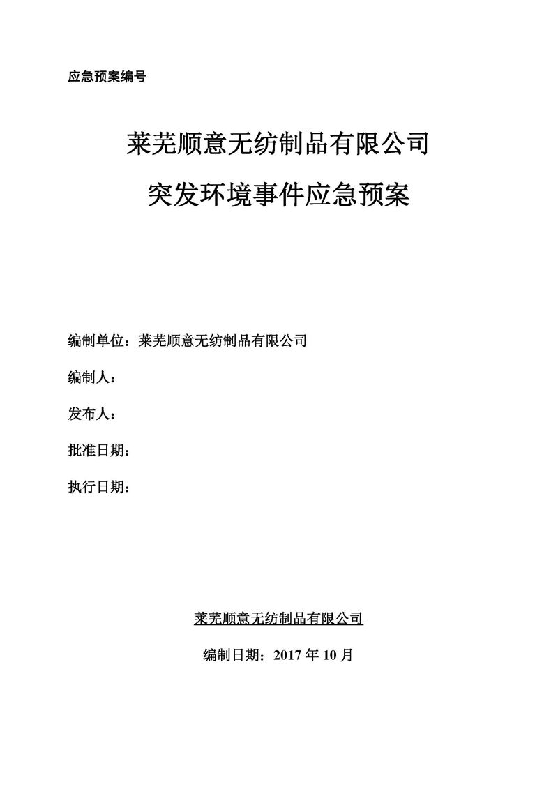 萊蕪順意無紡制品有限公司應(yīng)急預(yù)案