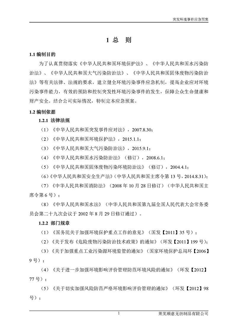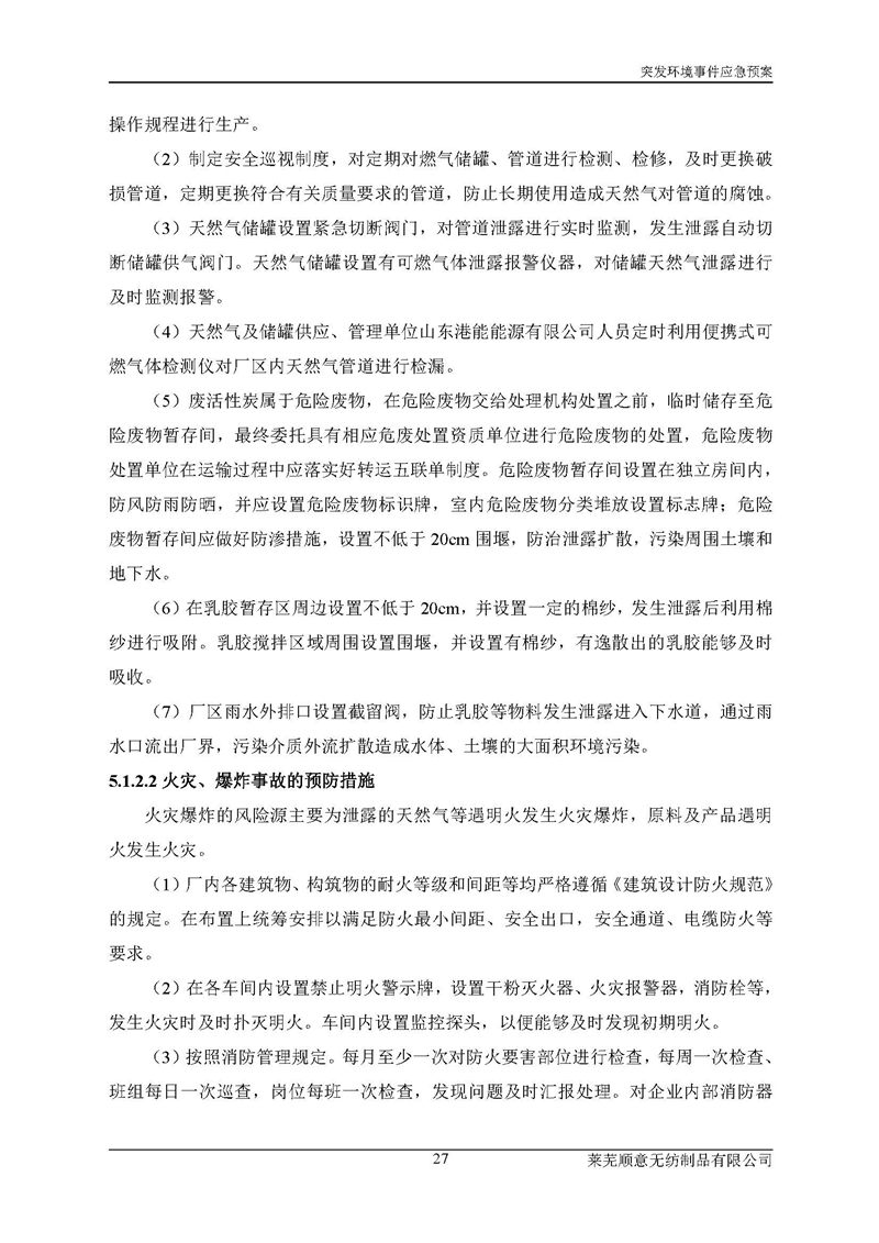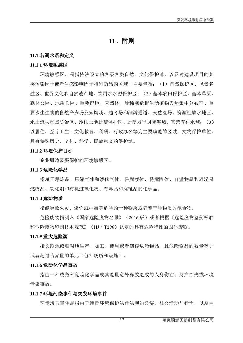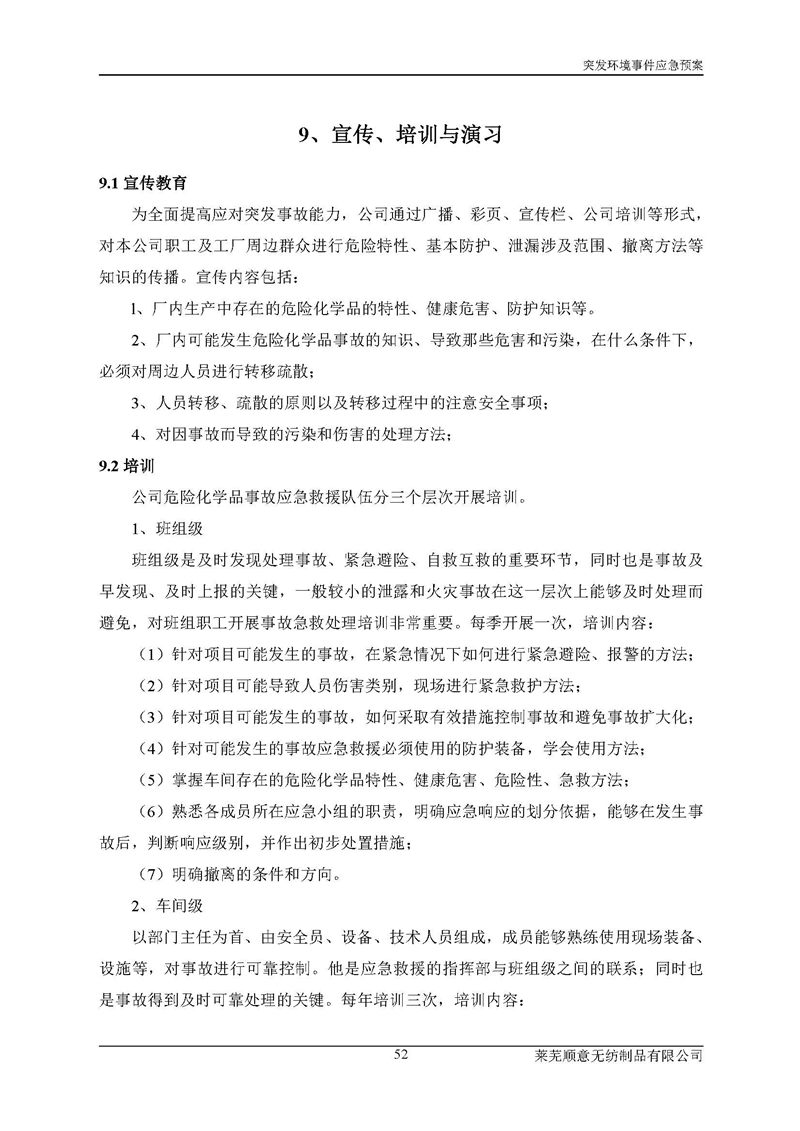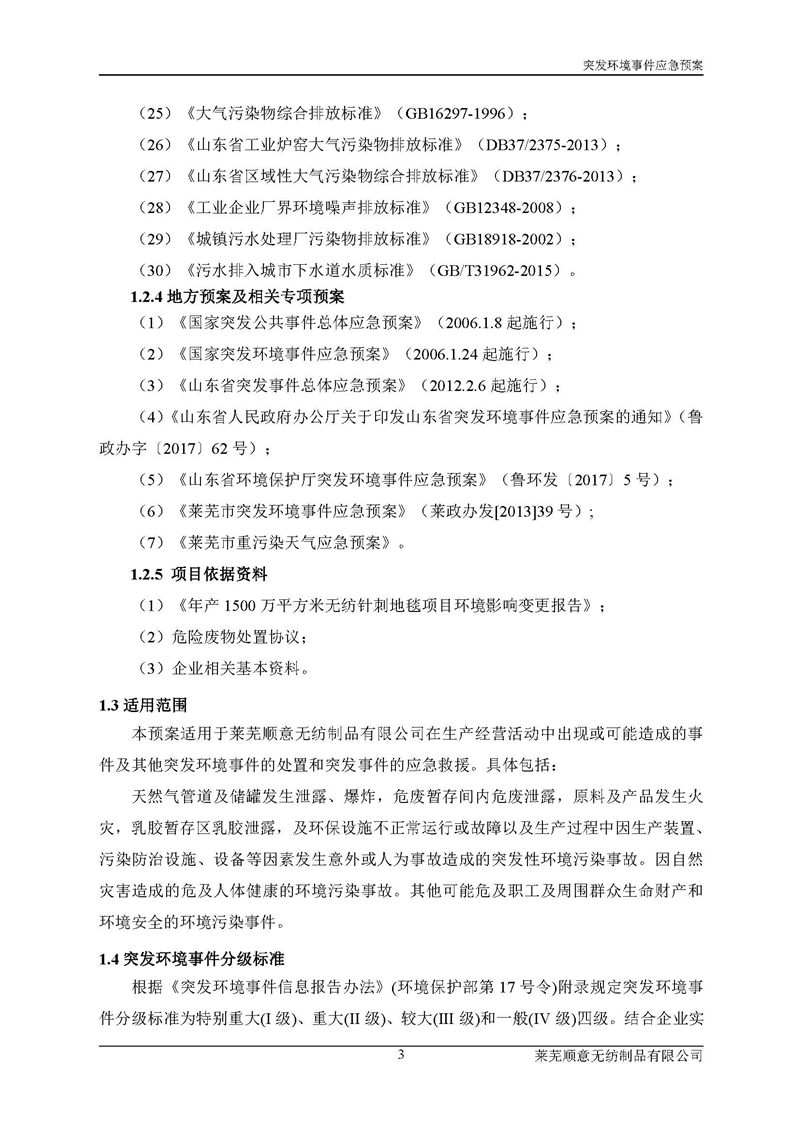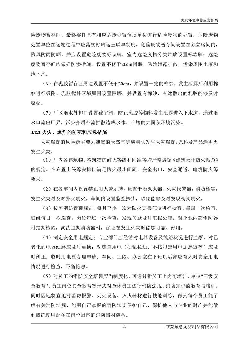 萊蕪順意無紡制品有限公司應(yīng)急預(yù)案