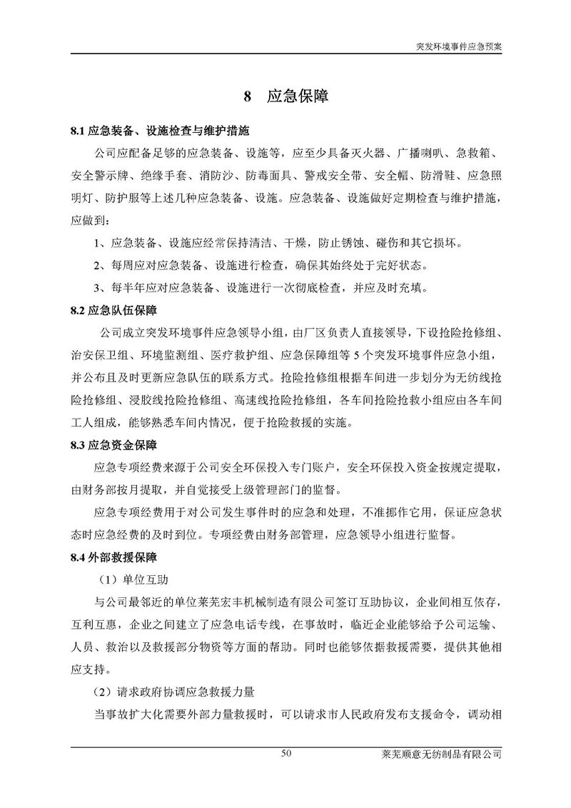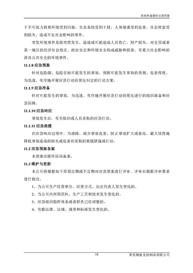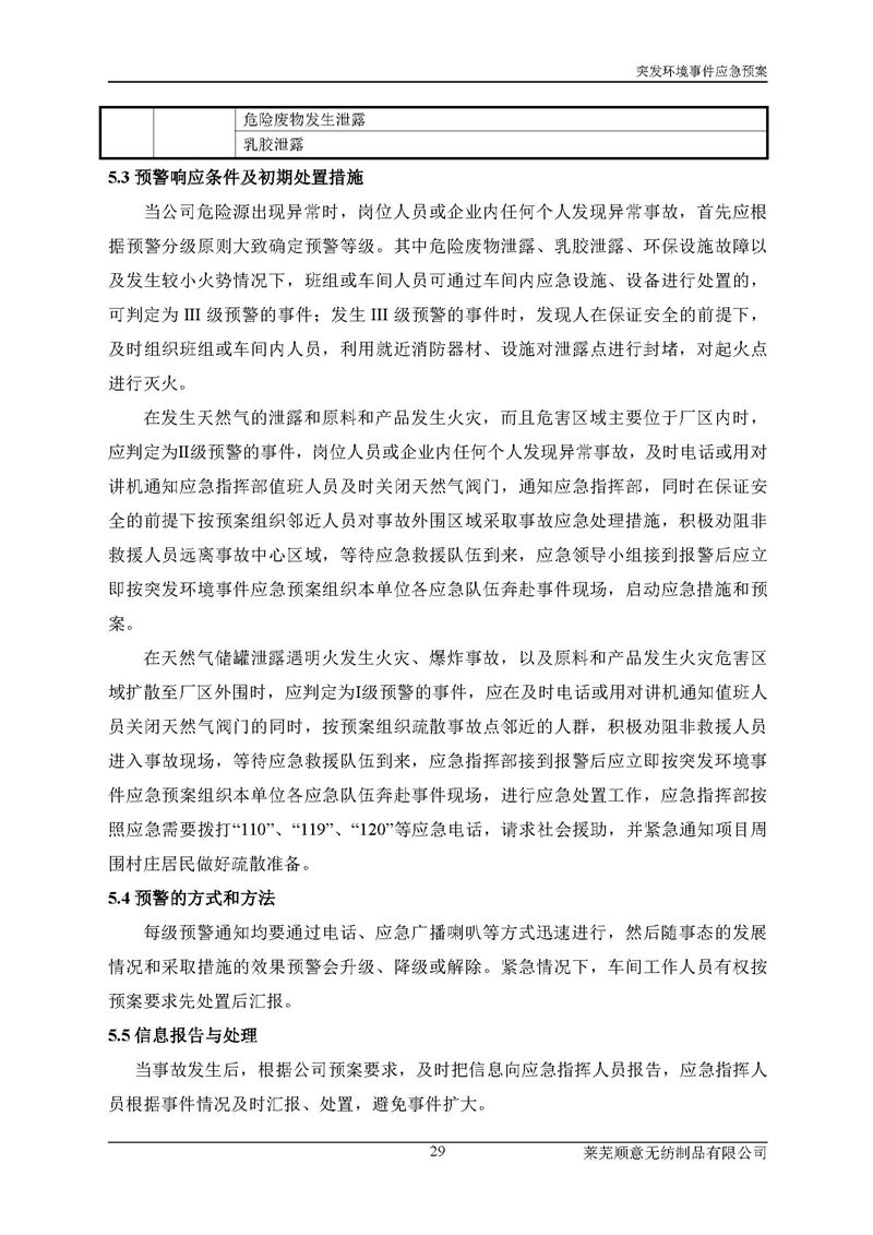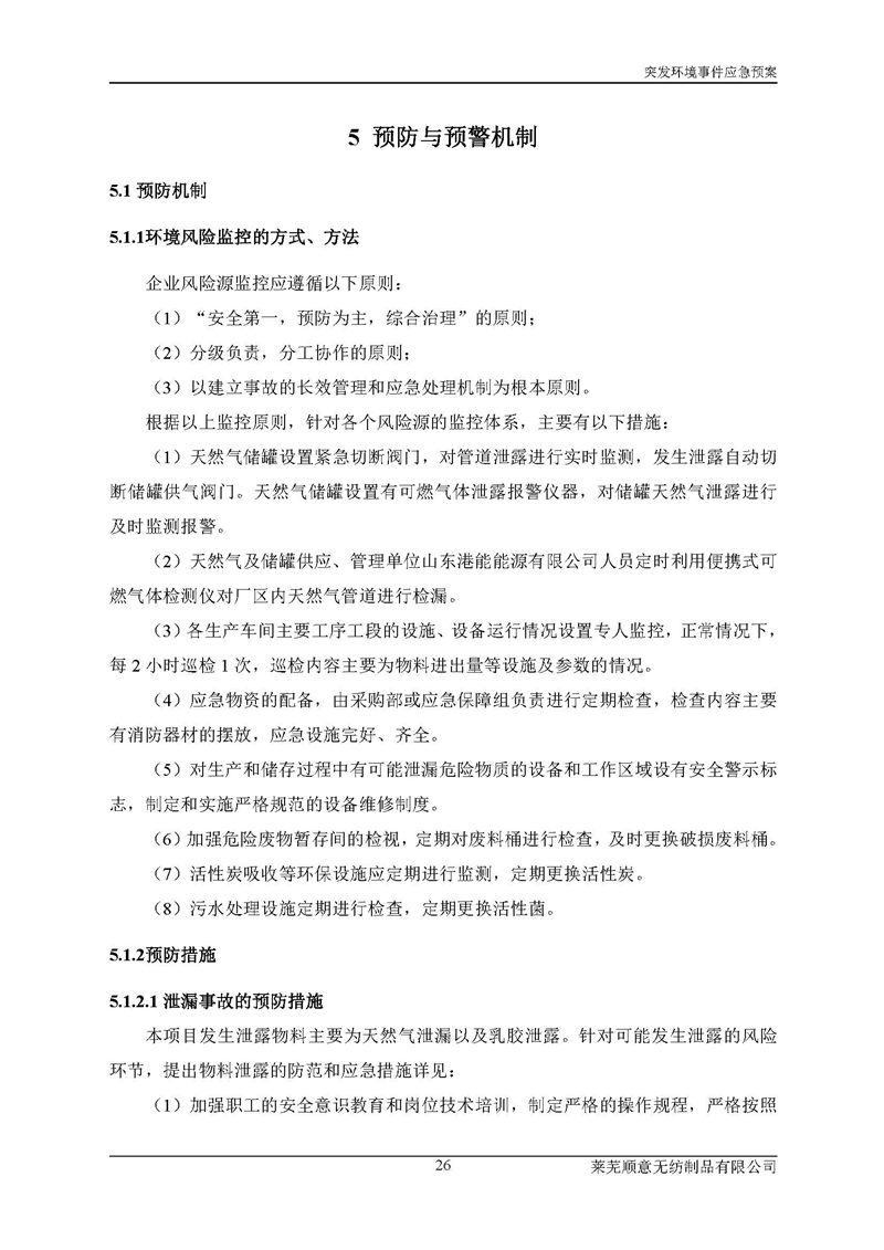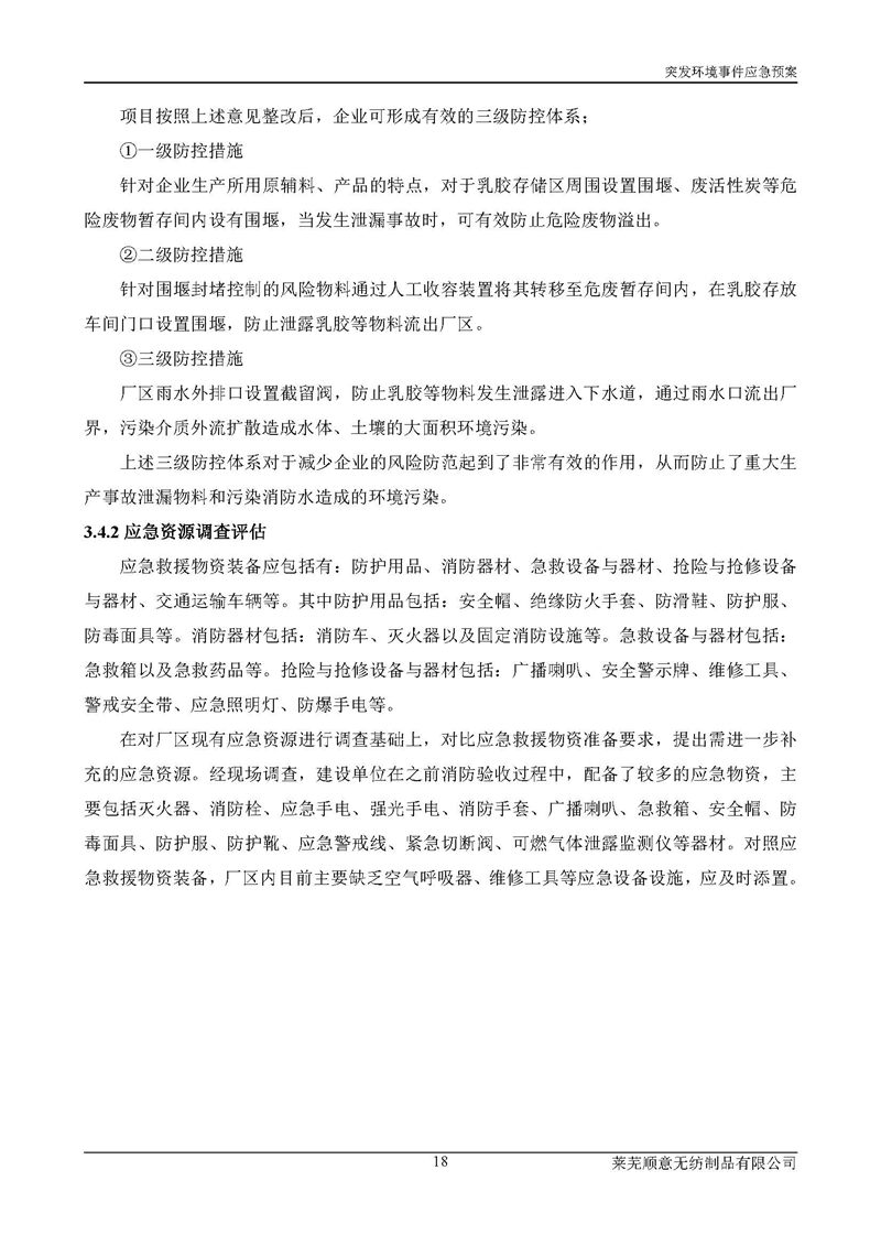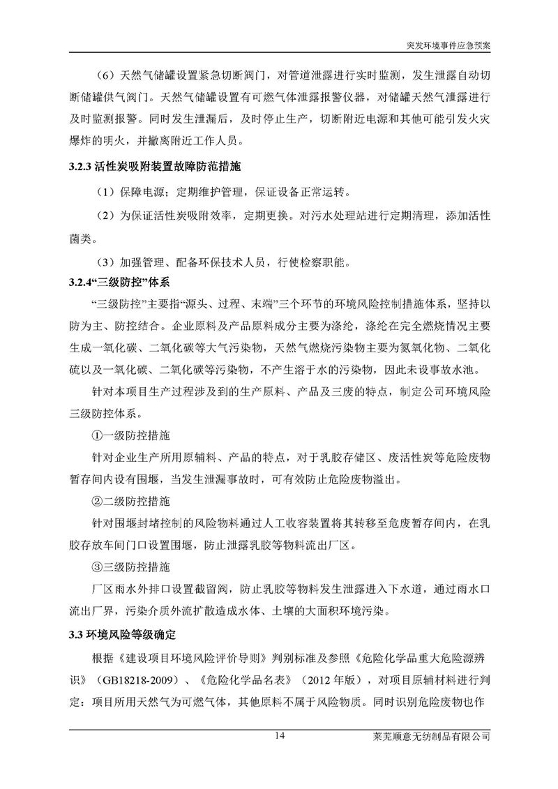 萊蕪順意無紡制品有限公司應(yīng)急預(yù)案