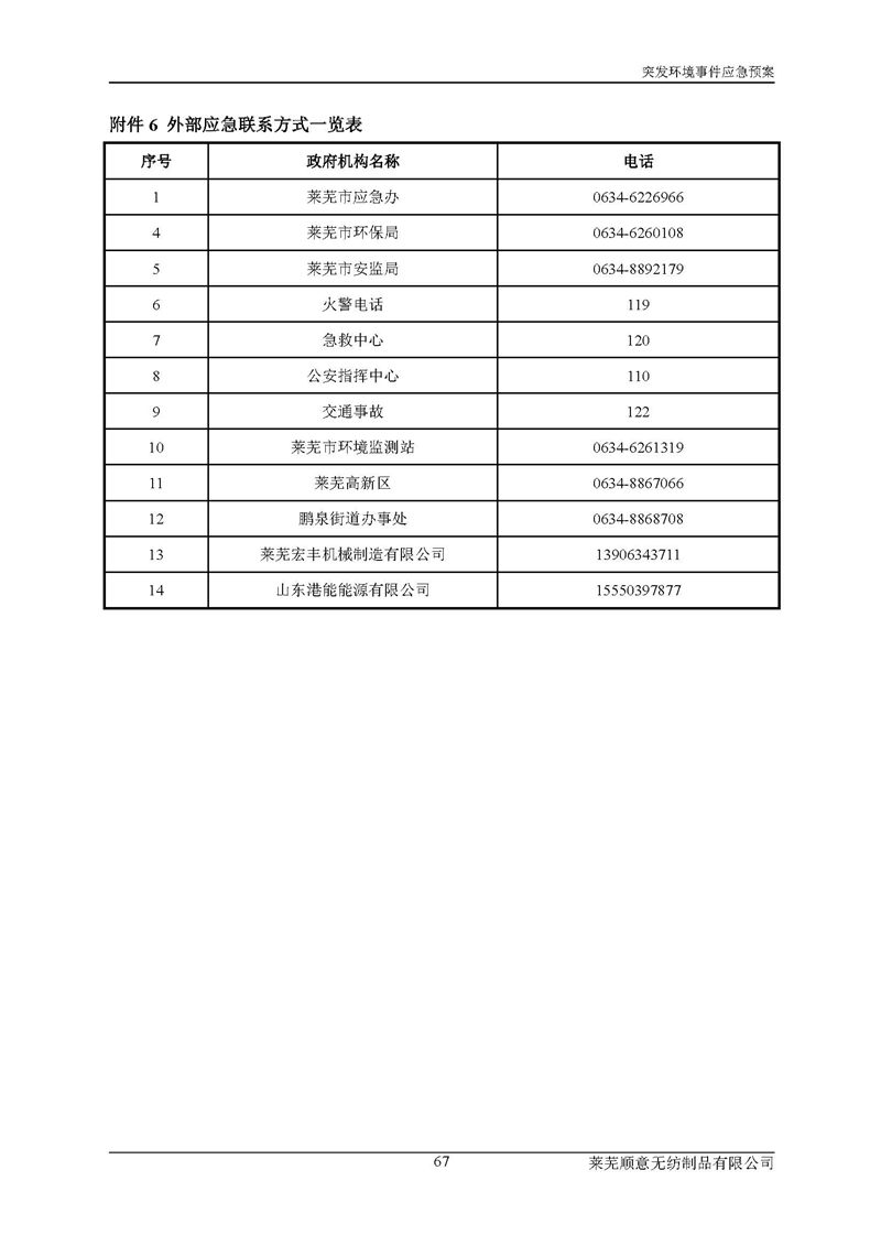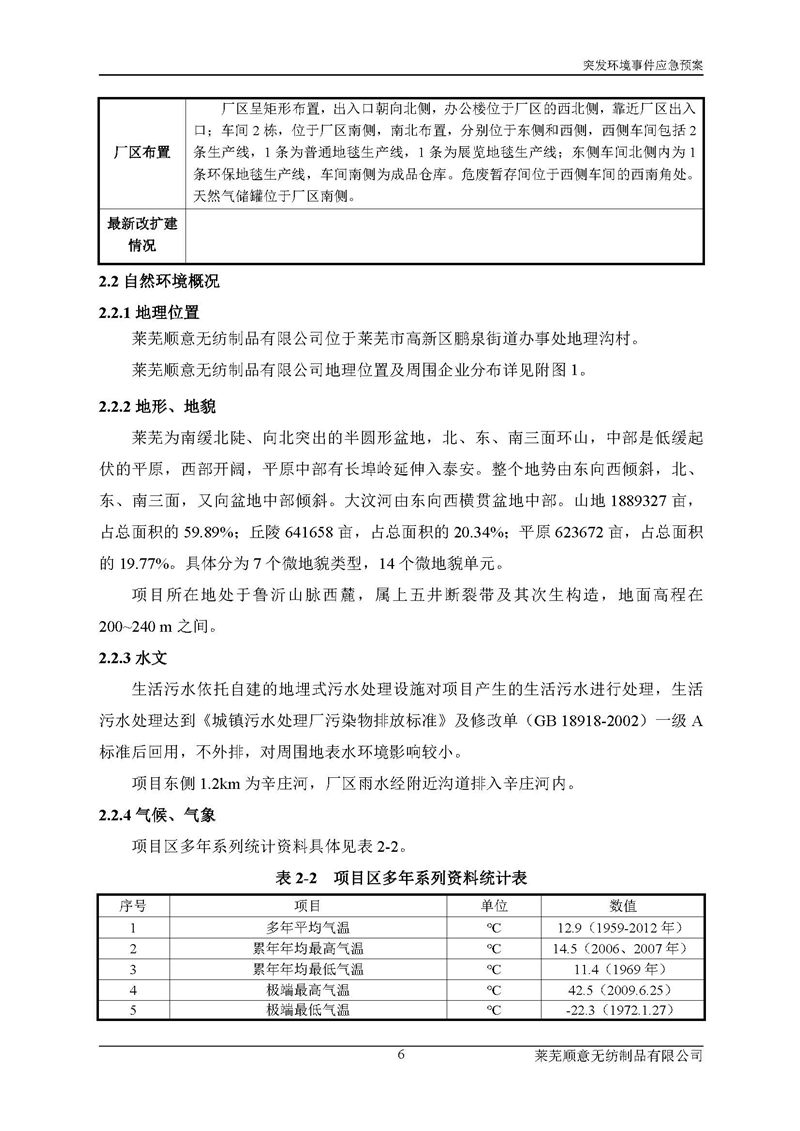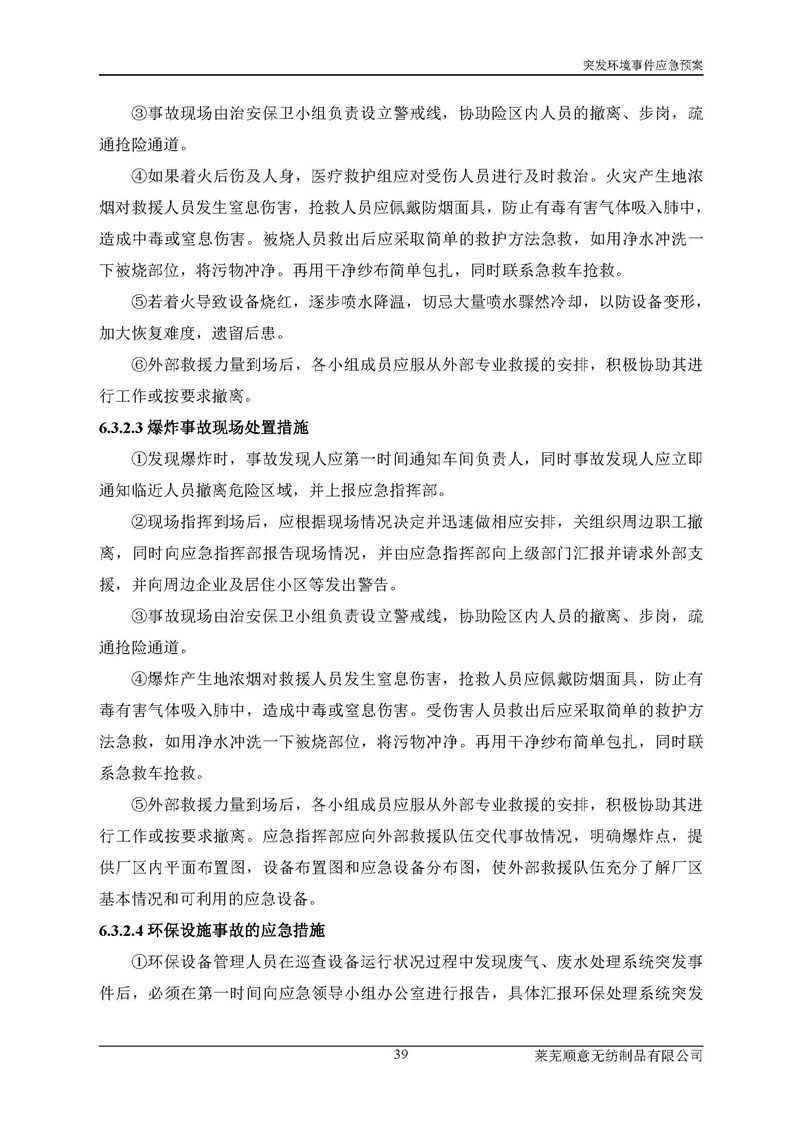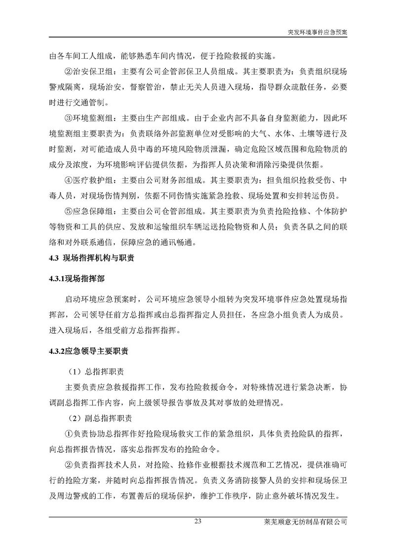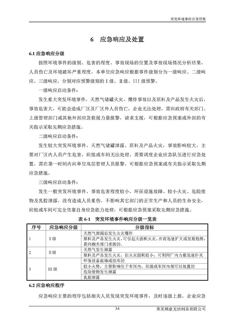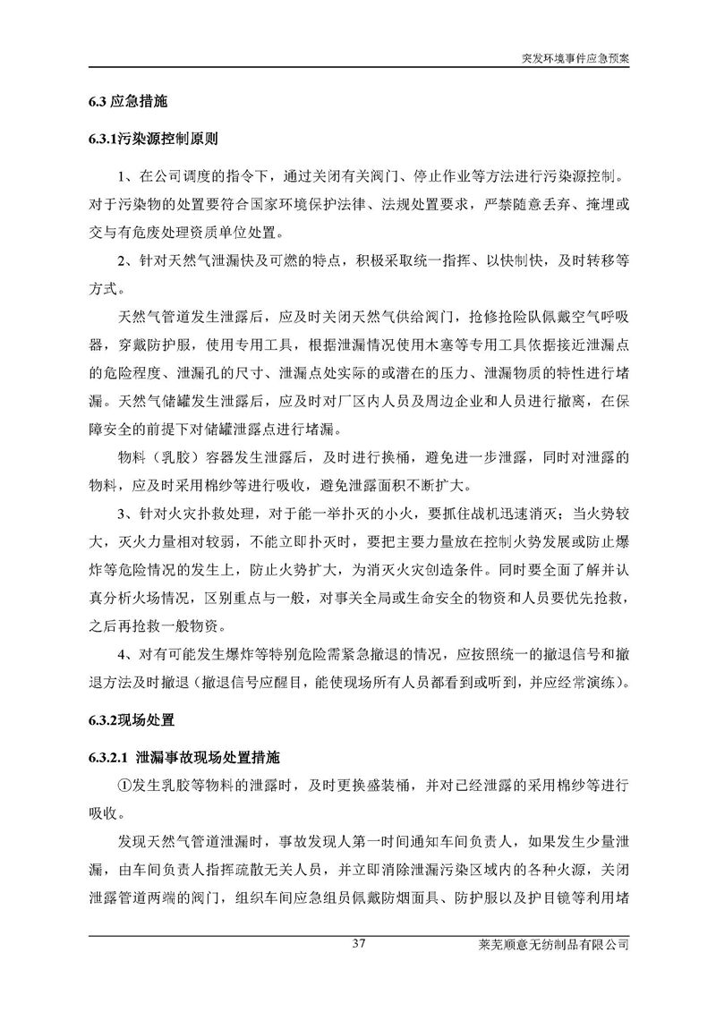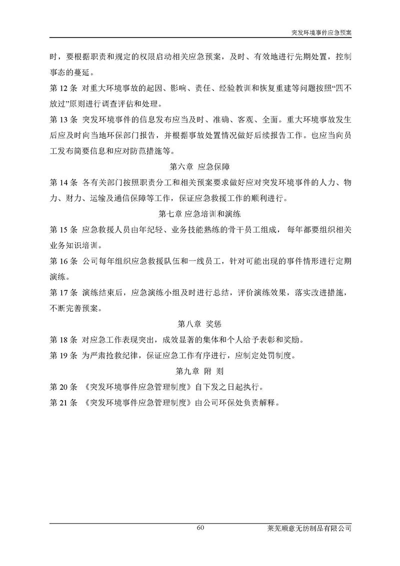萊蕪順意無紡制品有限公司應(yīng)急預(yù)案