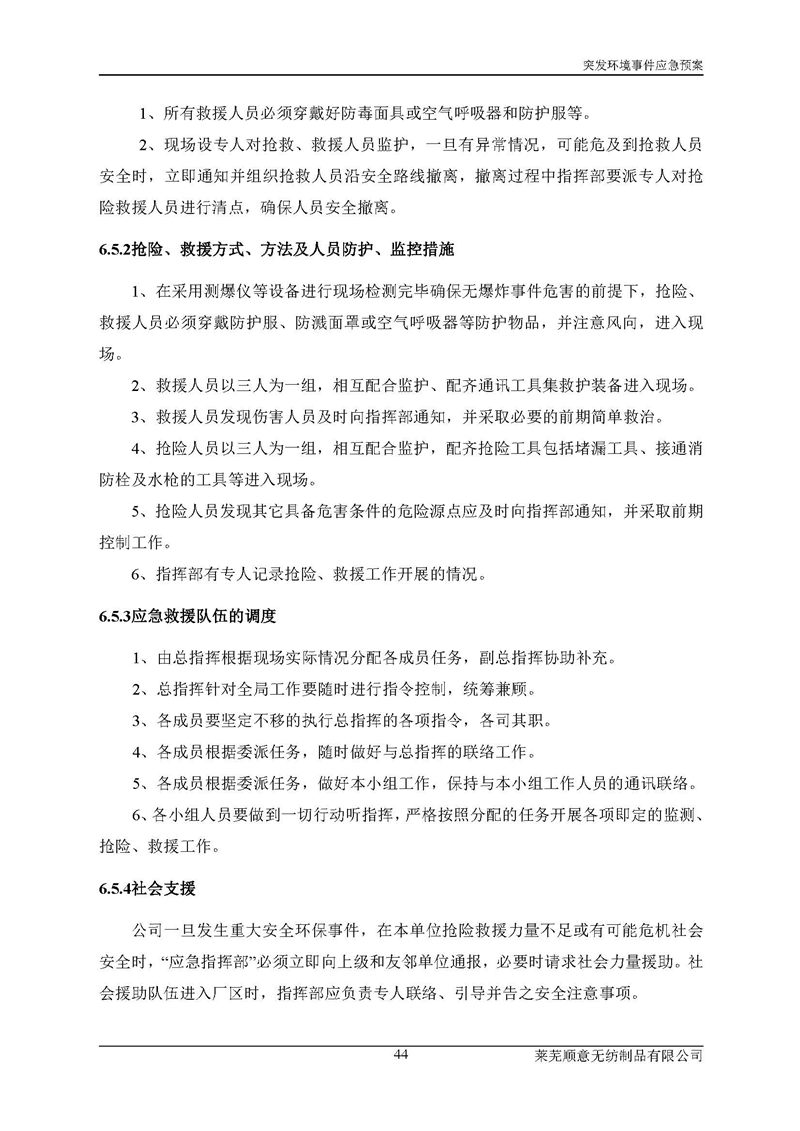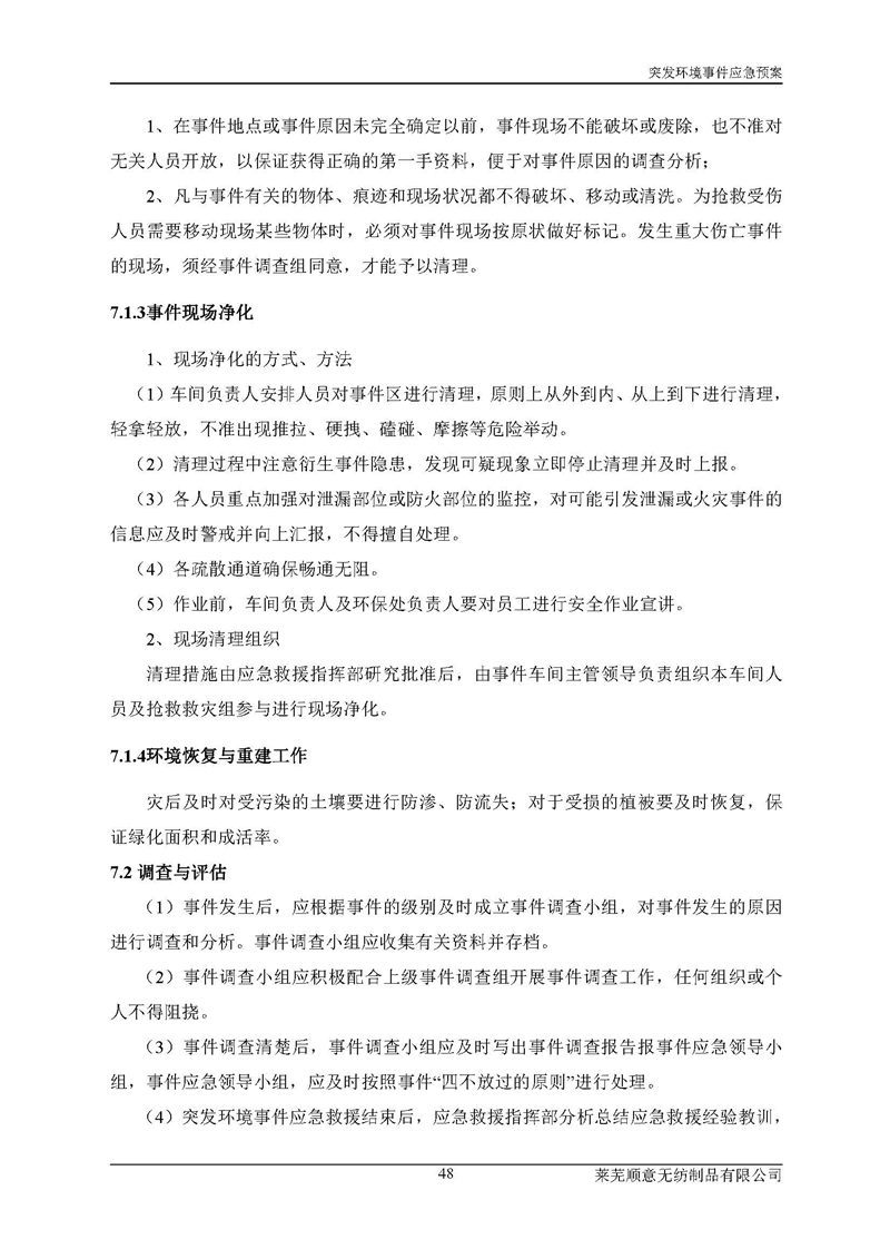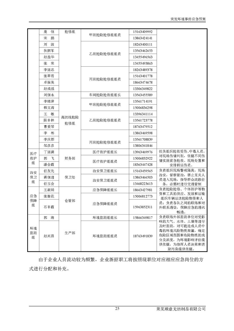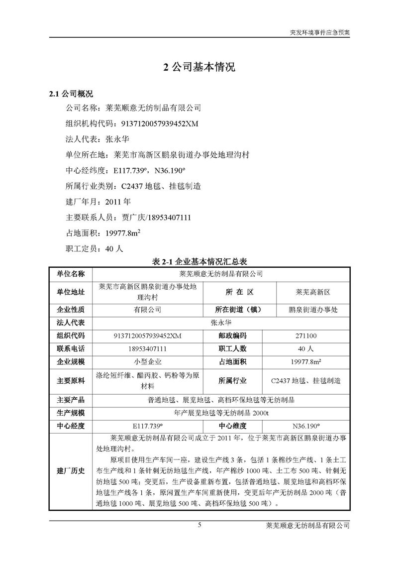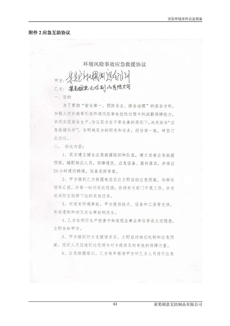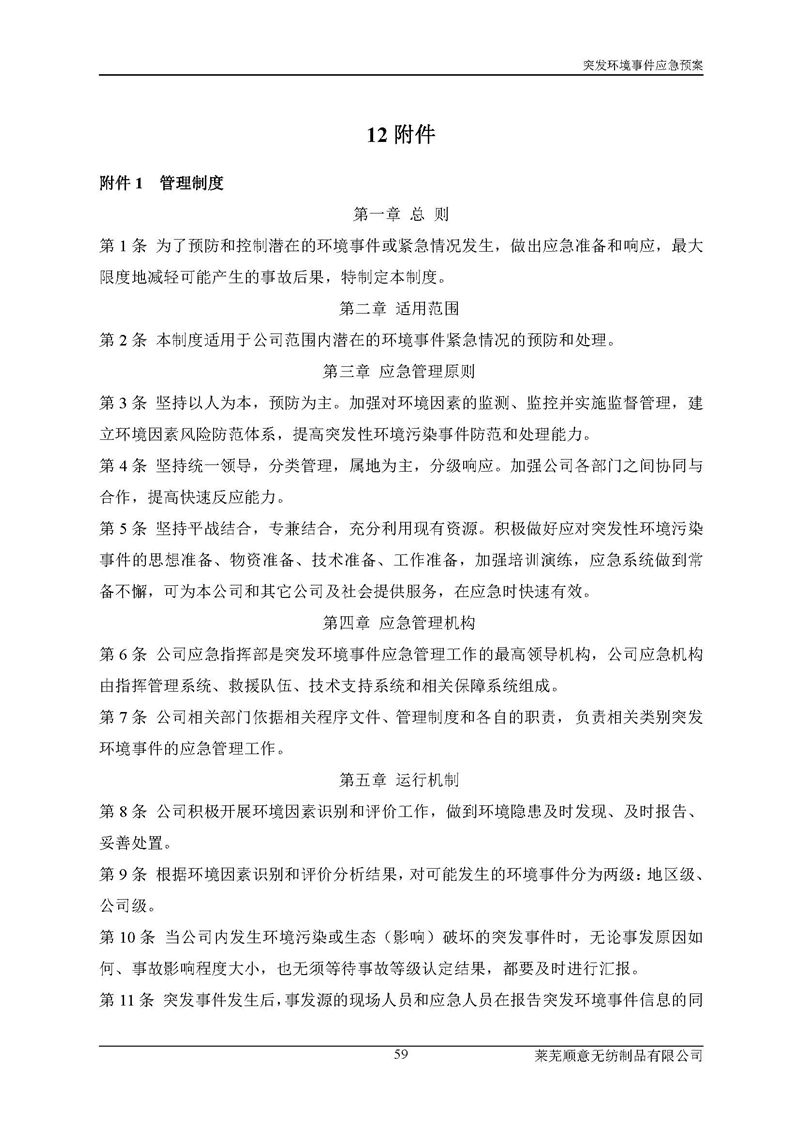 萊蕪順意無紡制品有限公司應(yīng)急預(yù)案