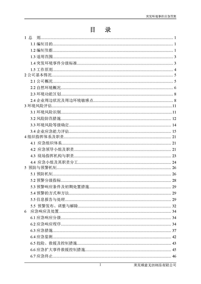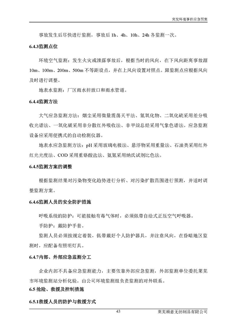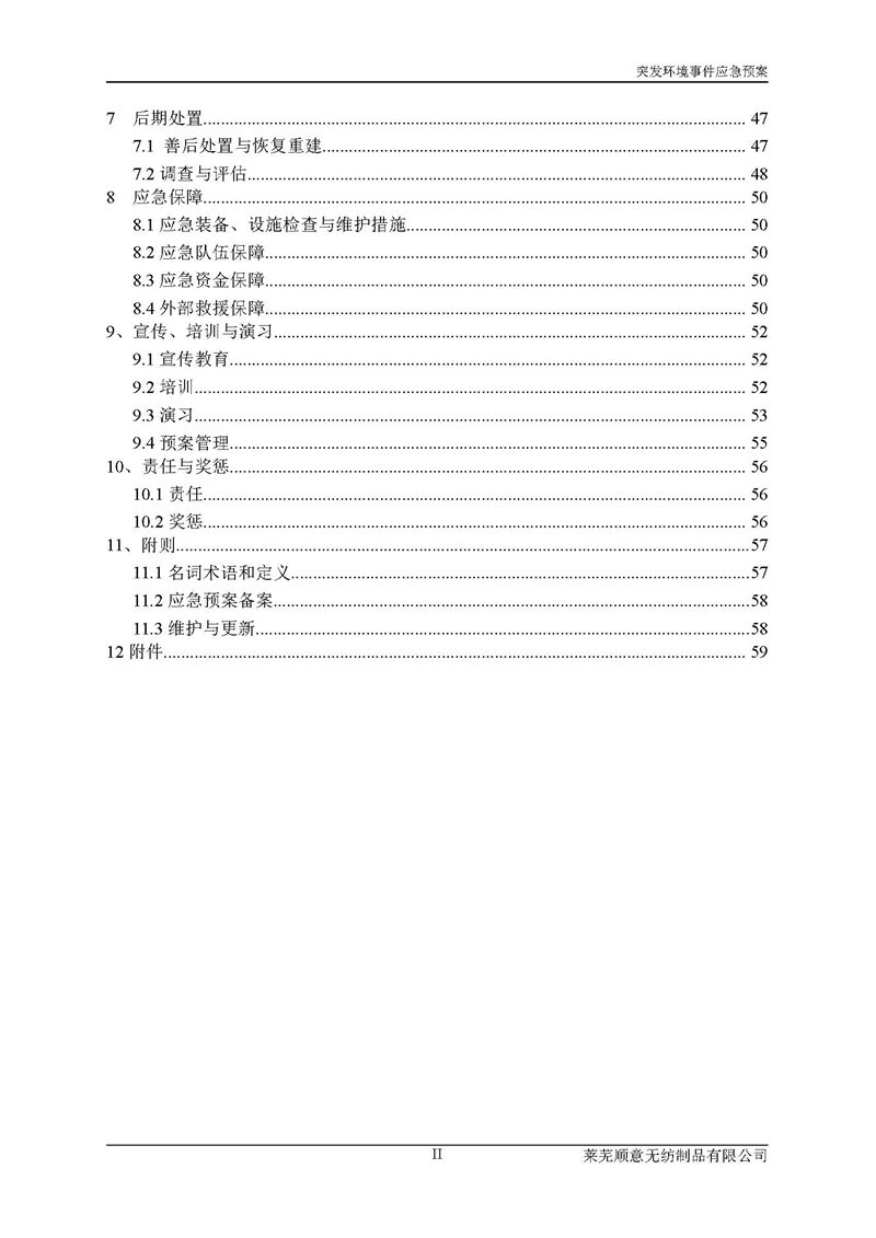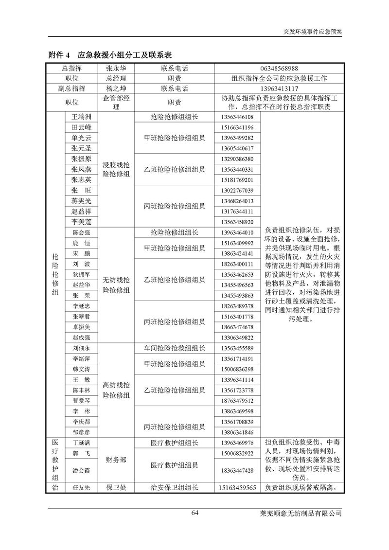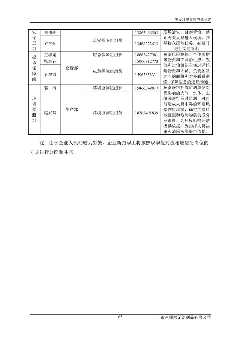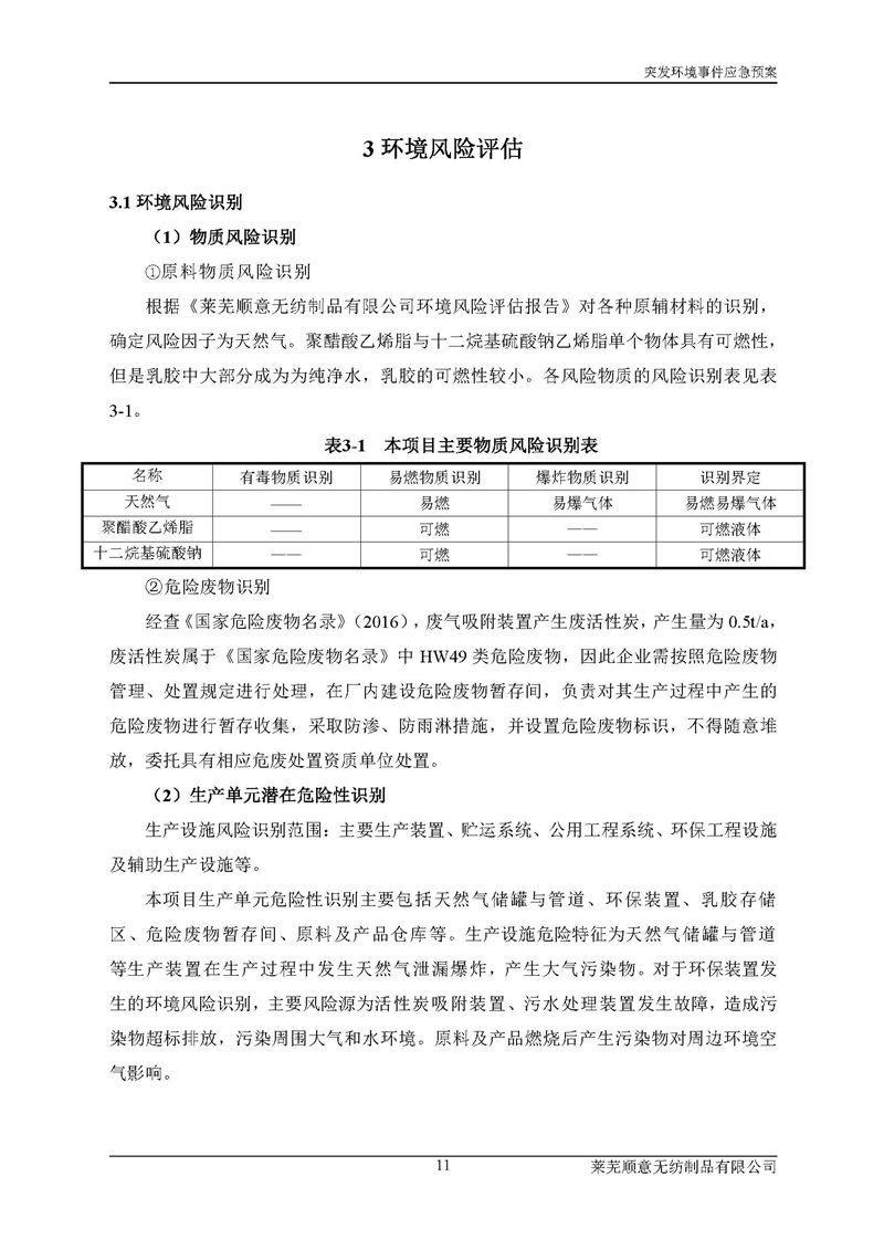 萊蕪順意無紡制品有限公司應(yīng)急預(yù)案