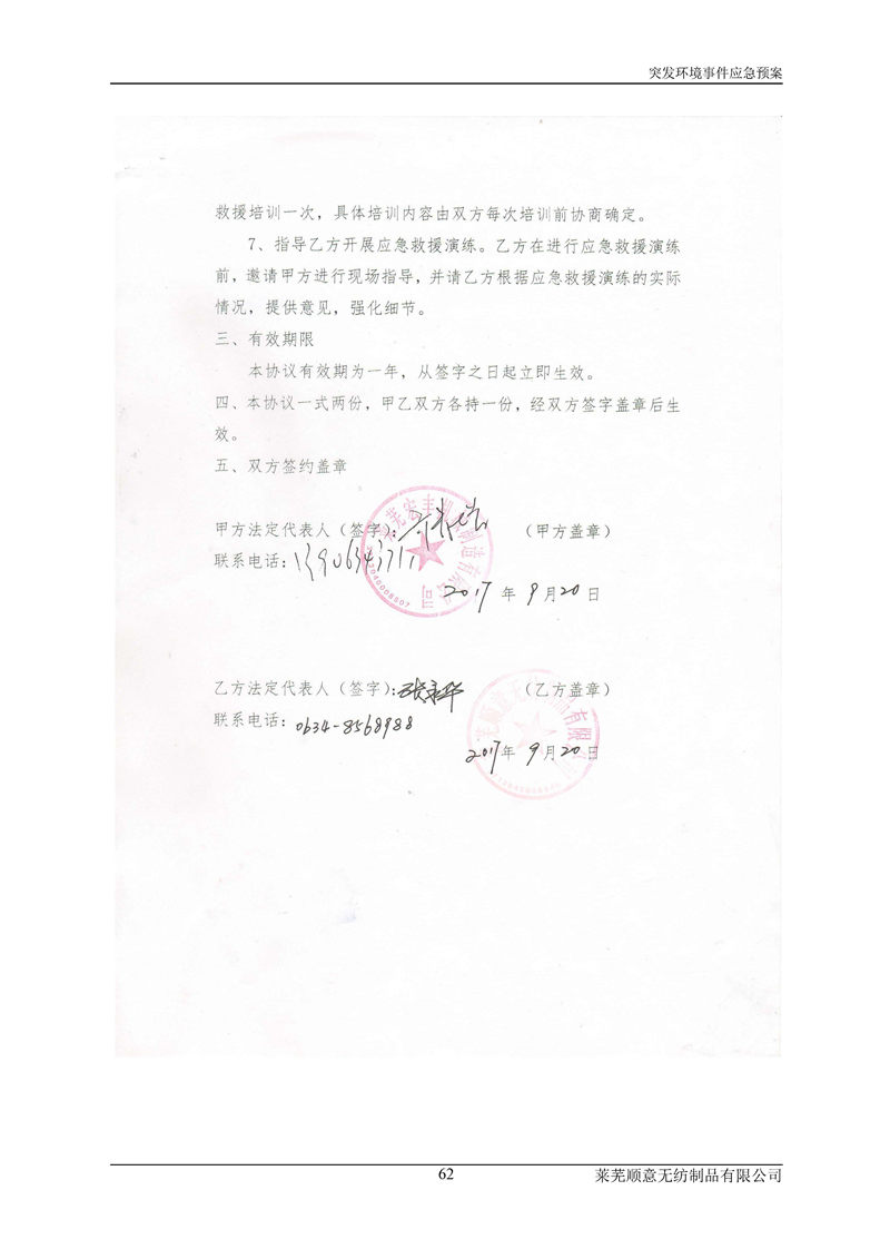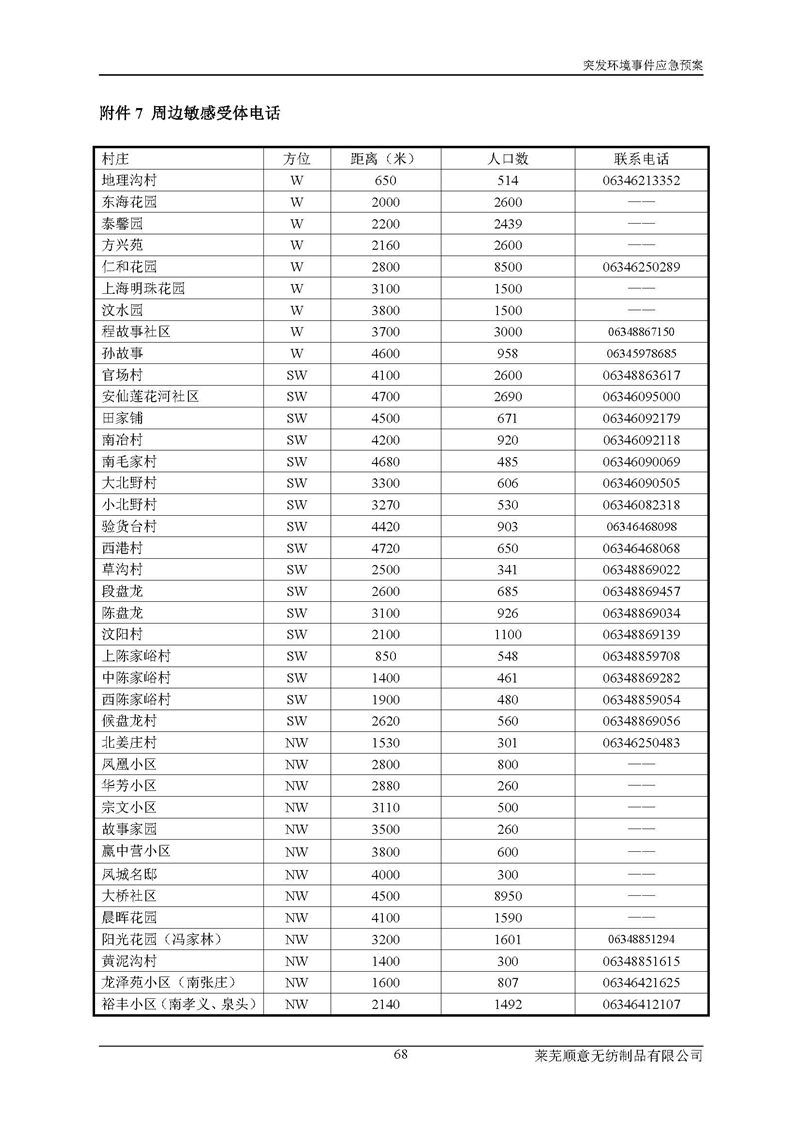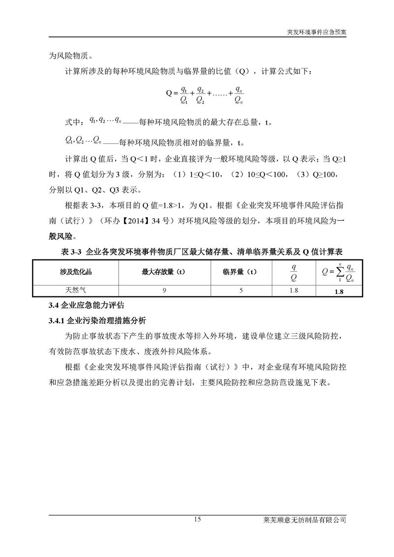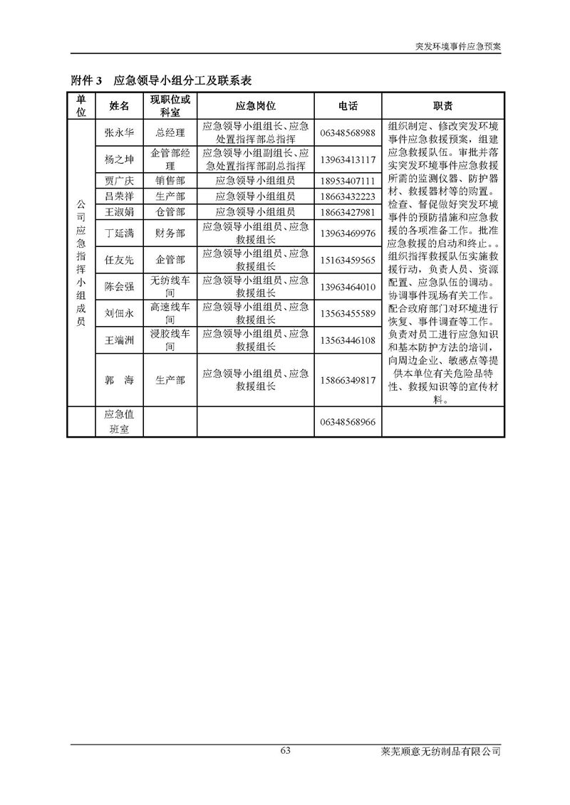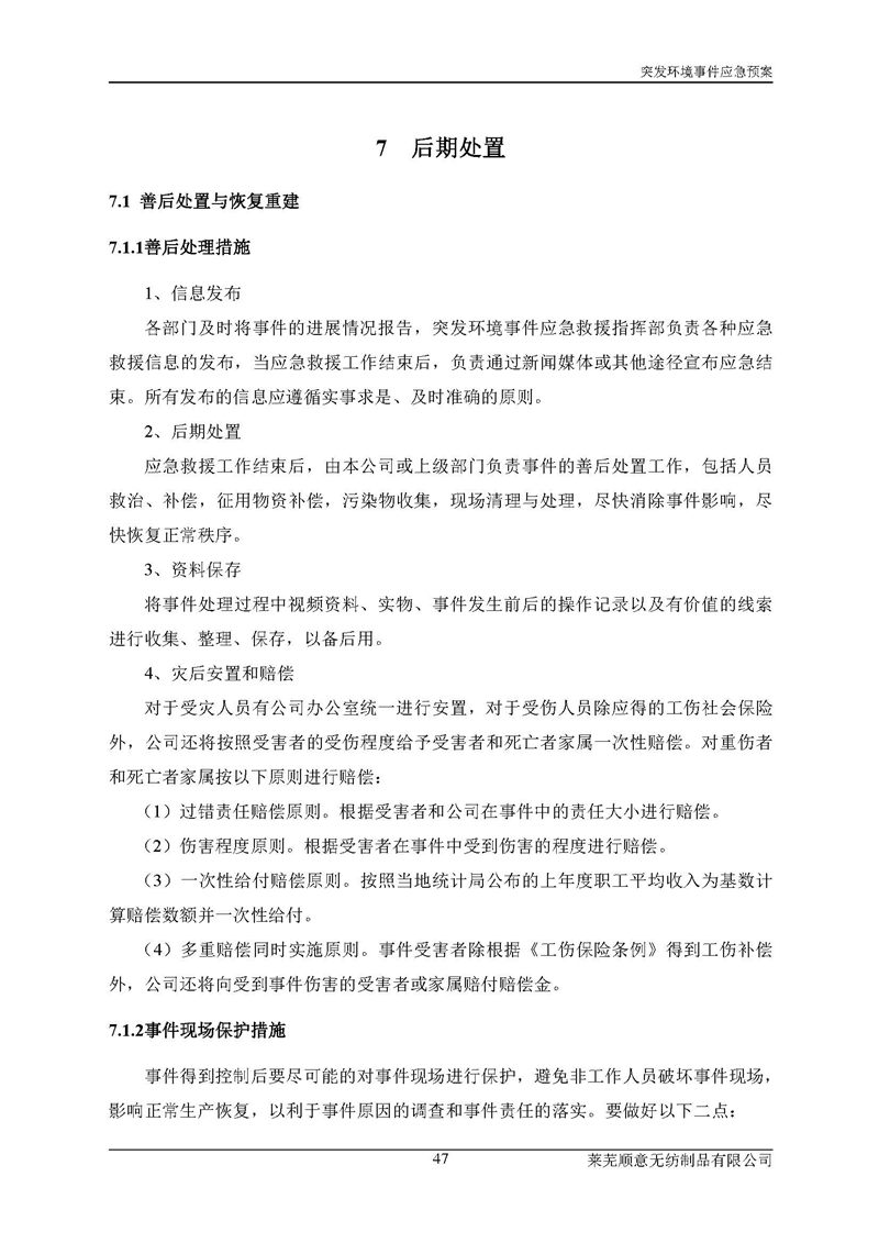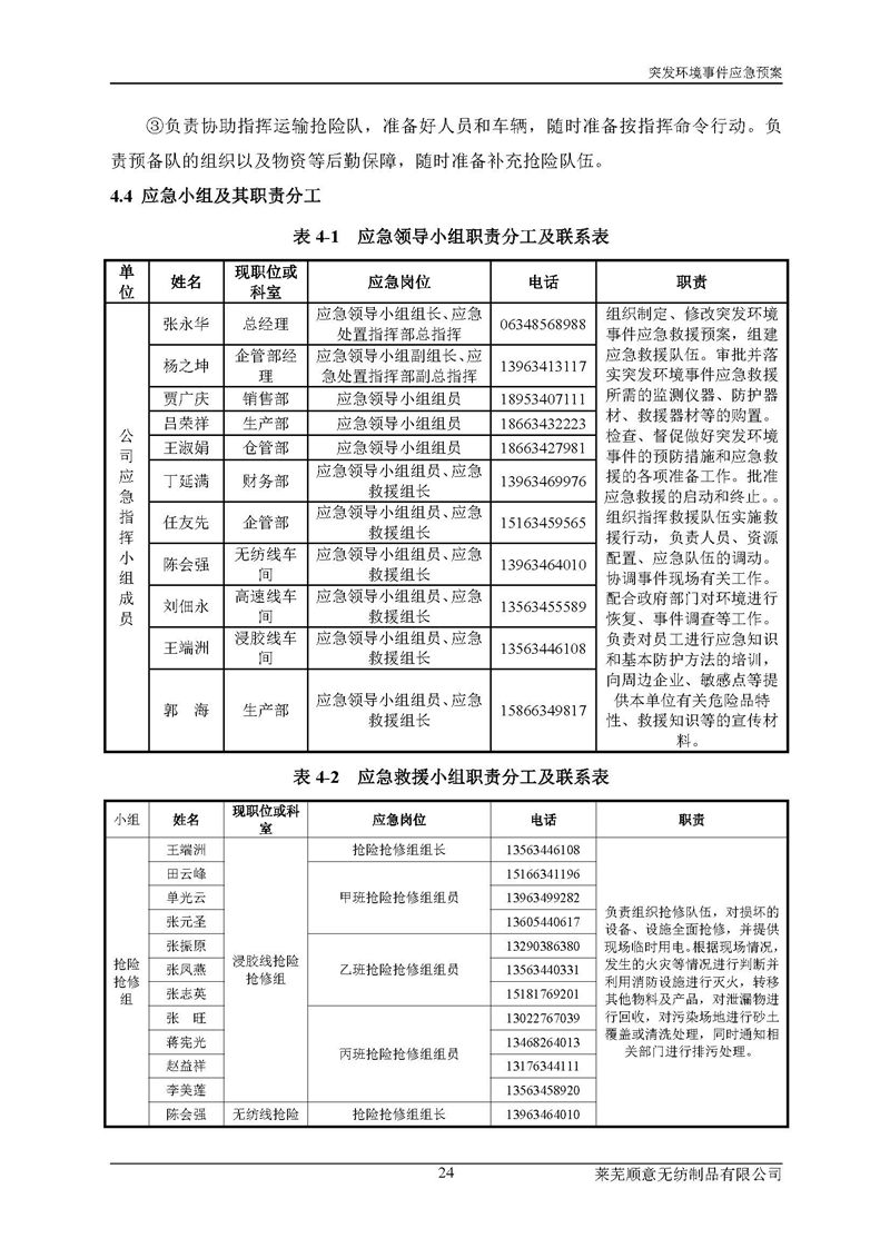 萊蕪順意無紡制品有限公司應(yīng)急預(yù)案